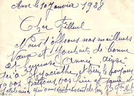 A la libération, ils recueillent Pierre, frère de Joseph, qui revient d'Allemagne, en attendant la libération de la 'poche de St Nazaire'. Pierre revient ensuite à Anor pour occuper un poste de douanier. Joseph et Florentine quittent Anor fin 1945 pour Bordeaux (Quartier de Lormont) ou ils restent 3 ans, avant de rejoindre Siguer(09). En 1958, mutation à Le Palais, Belle-île en mer, ou Joseph termine sa carrière début 69. Il décède à Le Palais le 12 décembre 1969, et est inhumé à Férel. Ses cendres seront ramenées au cimetière de St Lizier en 2004, où il repose près de Florentine, décédée en 1988 à Ercé.(09). (1ère allée à droite en rentrant dans le cimetière) Clic pour la suite |